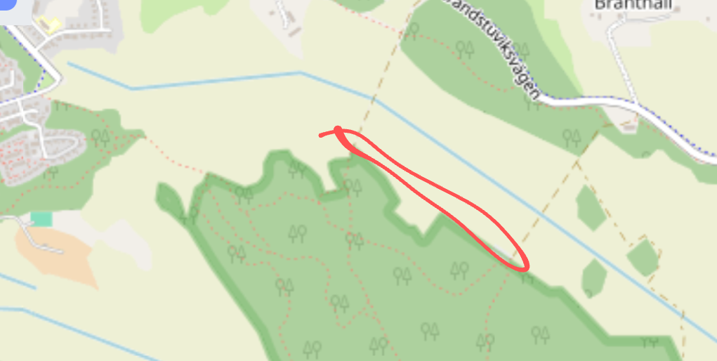 Det positiva är att vi ändå har lyckats få till ett fint skidspår på cirka ett par kilometer. Spåret går på norra sidan och utgår från Gruvstugan, vidare till parkeringen vid Branthälls loge, och tillbaka samma väg. Länk till Google maps.